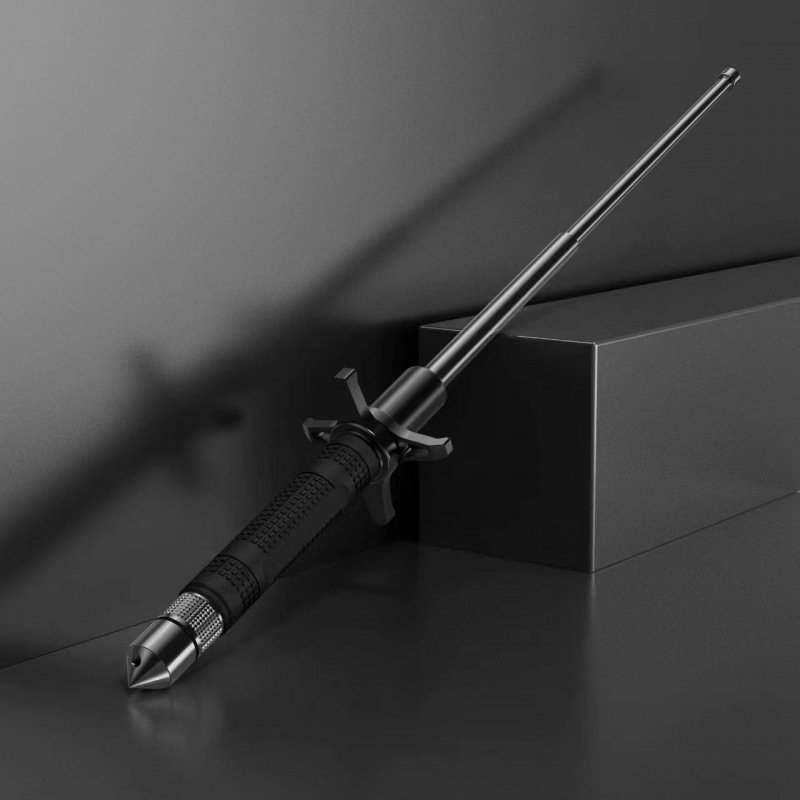 Lobster Grip Paratrooper Self-Defense Baton Three-Section Telescopic Baton Rubber Emergency Baton with Window Breaker Self-Defense Baton, wapenstok